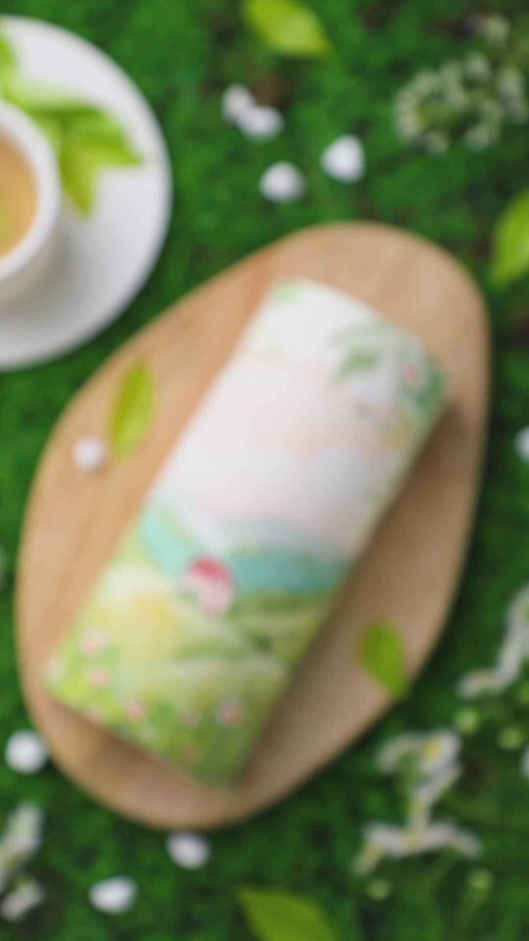 ● Final Assembly – Layer matcha cream with strawberry filling over the cake base, freeze to set, then slice to reveal your countryside tableau.