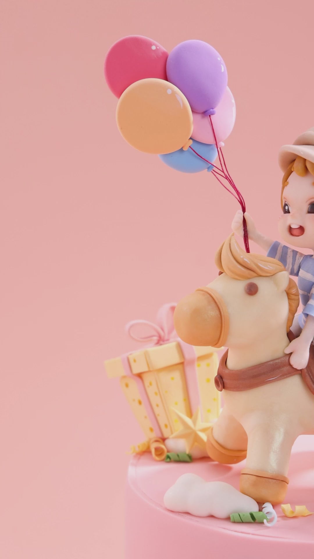 Learners will master the sculpting of a chibi-style boy riding a carousel horse, internal support structure assembly, fine detailing, coloring, and full cake composition, resulting in a visually engaging and playful themed cake suitable for celebrations and keepsakes.